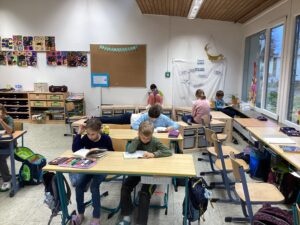 Zum Abschluss des Tages präsentierten die Kinder ihre Ergebnisse aus den Projekten, bevor sie noch einmal in verschiedene Bücher eintauchen und schmökern durften. So endete der Fredericktag mit vielen neuen Eindrücken und der Vorfreude auf die wohlverdienten Herbstferien.